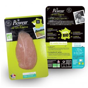 Depuis 2016, nous faisons ainsi évoluer nos emballages pour en limiter leur impact sur l’environnement : troquant, dans un premier temps, nos barquettes polystyrène (non recyclables) contre des barquettes plastiques PET mono-matériaux recyclables. Puis, en Avril, nous innovons de nouveau et décidons de conditionner nos découpes de volaille Picoreur sur un support carton 100% recyclable et issu de forêts gérées durablement.