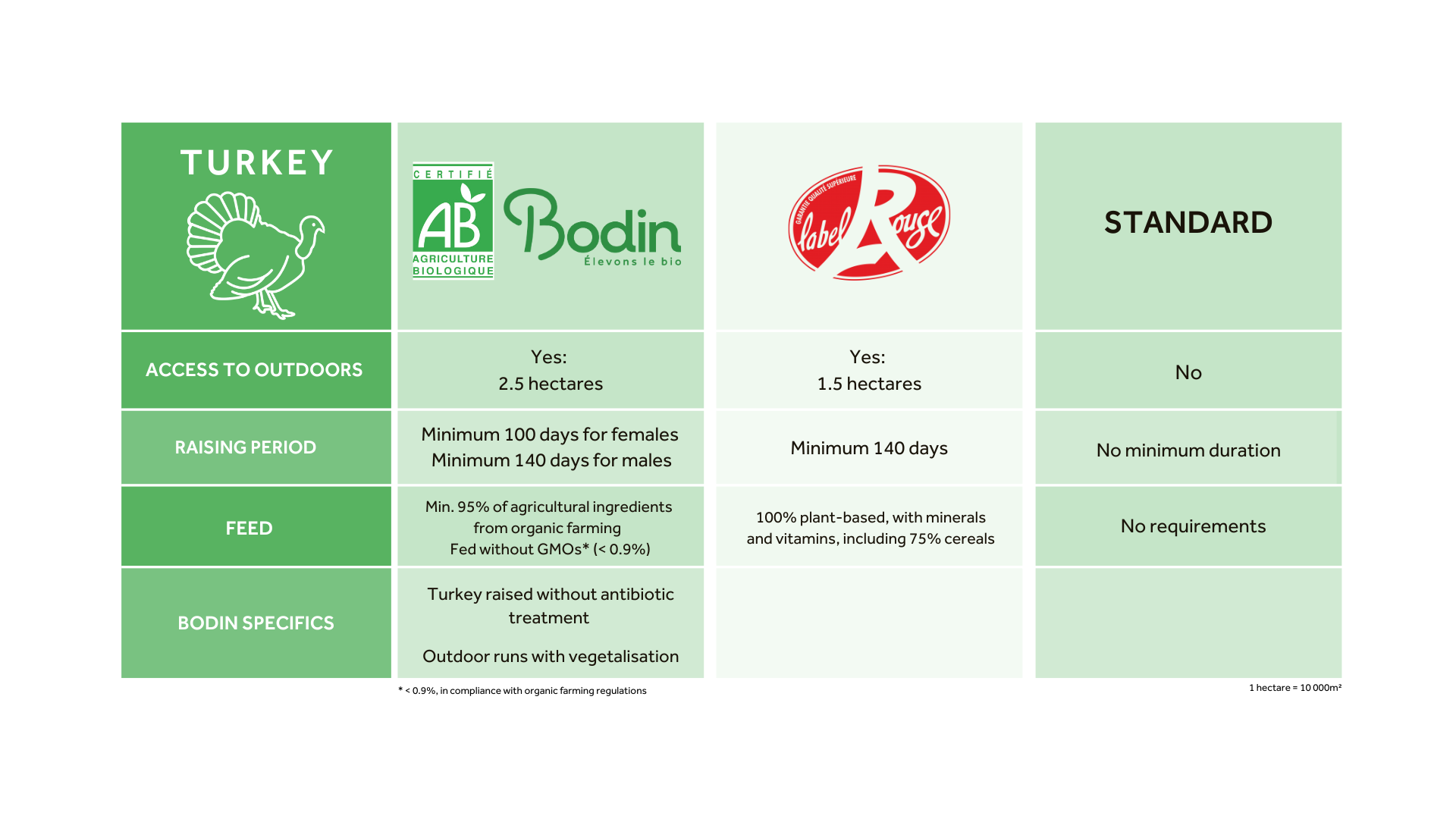 To obtain organic farming certification and be able to display the “AB” (Agriculture Biologique) logo, all those involved in organic poultry production are inspected by an independent, government-approved certification body.