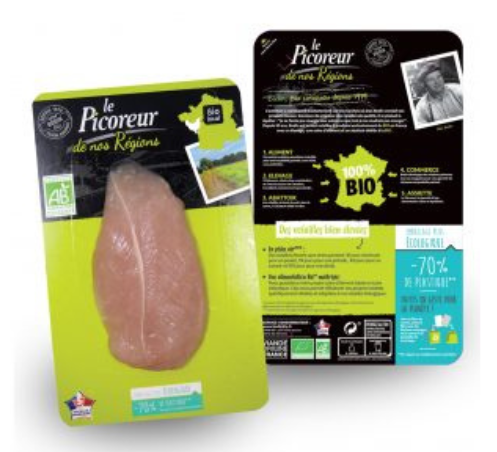 Nos équipes Bodin innovent sur les emballages en remplaçant les barquettes en plastique par des barquettes carton. Le Picoreur devient ainsi la première marque de volaille à proposer ces emballages éco-conçus, une avancée concrète qui permet de réduire de plus de 20 tonnes l’usage de plastique chaque année.