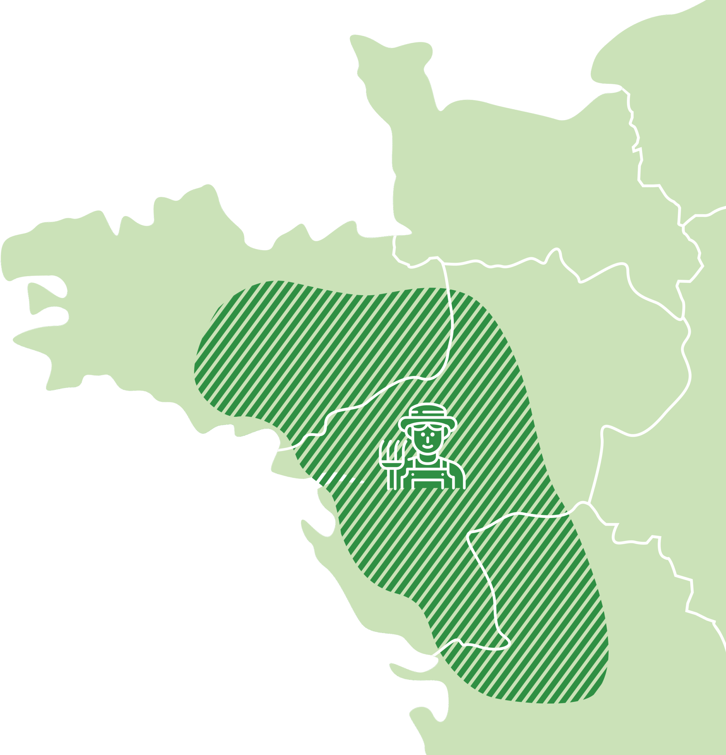 Nous travaillons avec 122 éleveurs et éleveuses de volailles biologiques, installés dans l’Ouest de la France. Cette activité au cœur des terroirs de l’ouest reflète notre volonté de soutenir un développement local : elle facilite les échanges, permet un suivi attentif des élevages et réduit les distances de transport, un bénéfice concret pour le bien-être animal comme pour l’environnement.